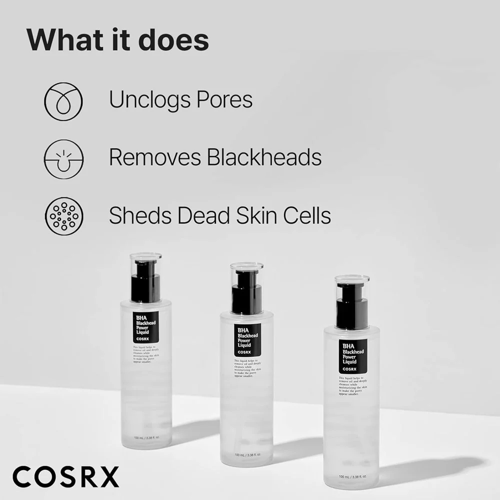 The COSRX BHA Blackhead Power Liquid is a powerful yet gentle exfoliant formulated with Betaine Salicylate (a natural BHA) that helps clear pores of blackheads, reduce excess sebum, and prevent breakouts. Perfect for oily, acne-prone, or congested skin types.