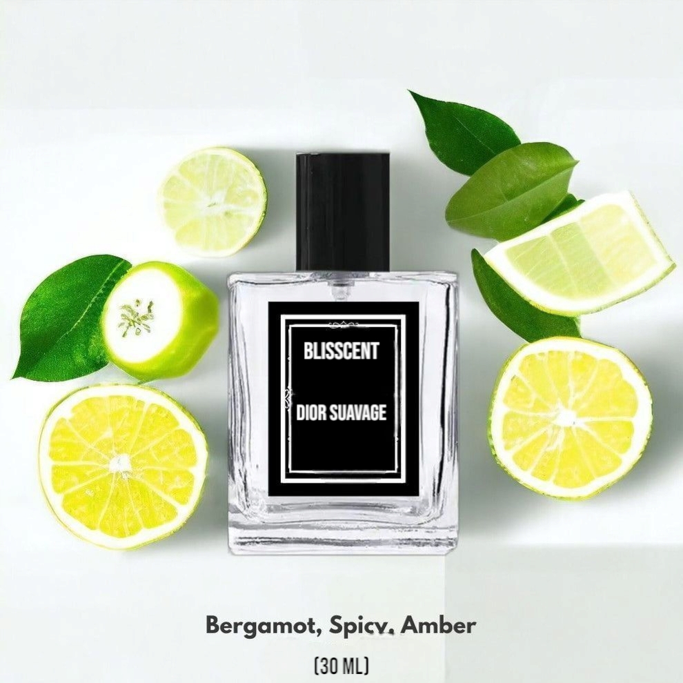 Blisscent is a bold Sauvage inspired perfume for men, blending bergamot, spicy freshness, and warm amber. A powerful and long-lasting Eau de Parfum in a sleek 30ml bottle.