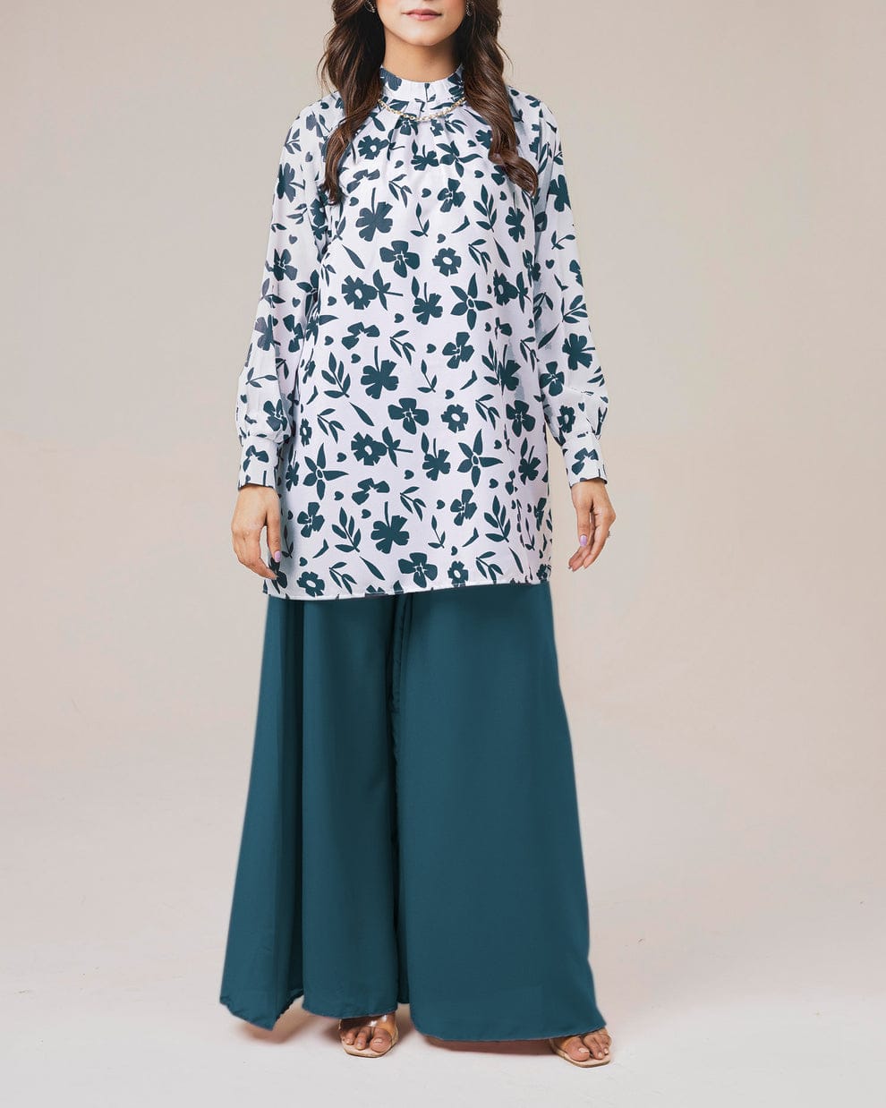 Step into understated grace with our Zinc Printed Shirt with Palazzo – a two-piece lawn cotton suit designed for effortless summer style. The kurta features a soft floral print in soothing zinc tones with subtle detailing, while the wide-legged palazzo adds a modern silhouette.