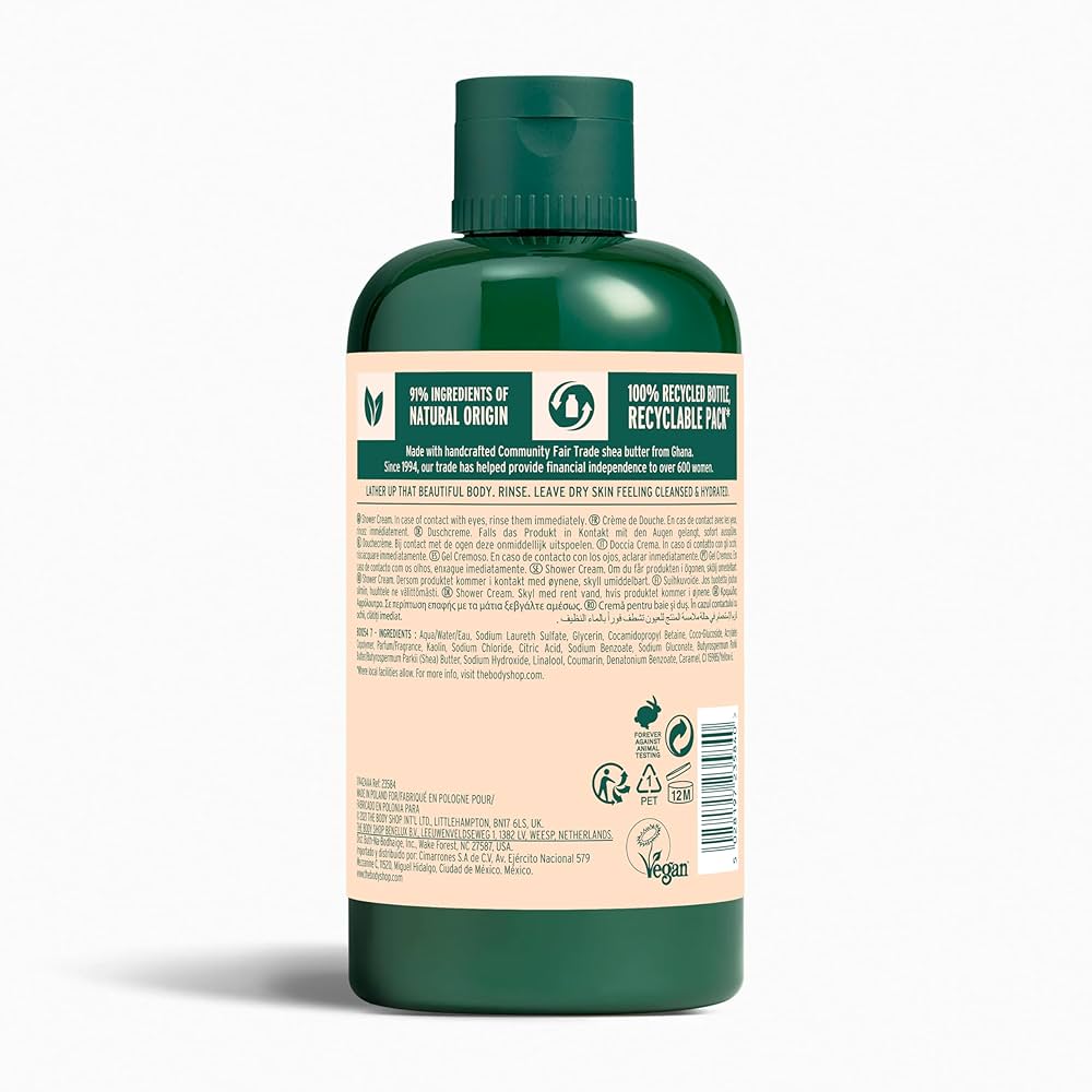 Squeeze into hands, lather up on wet skin or a loofah, and rinse thoroughly. For best results, follow with The Body Shop Shea Body Butter or Lotion.
