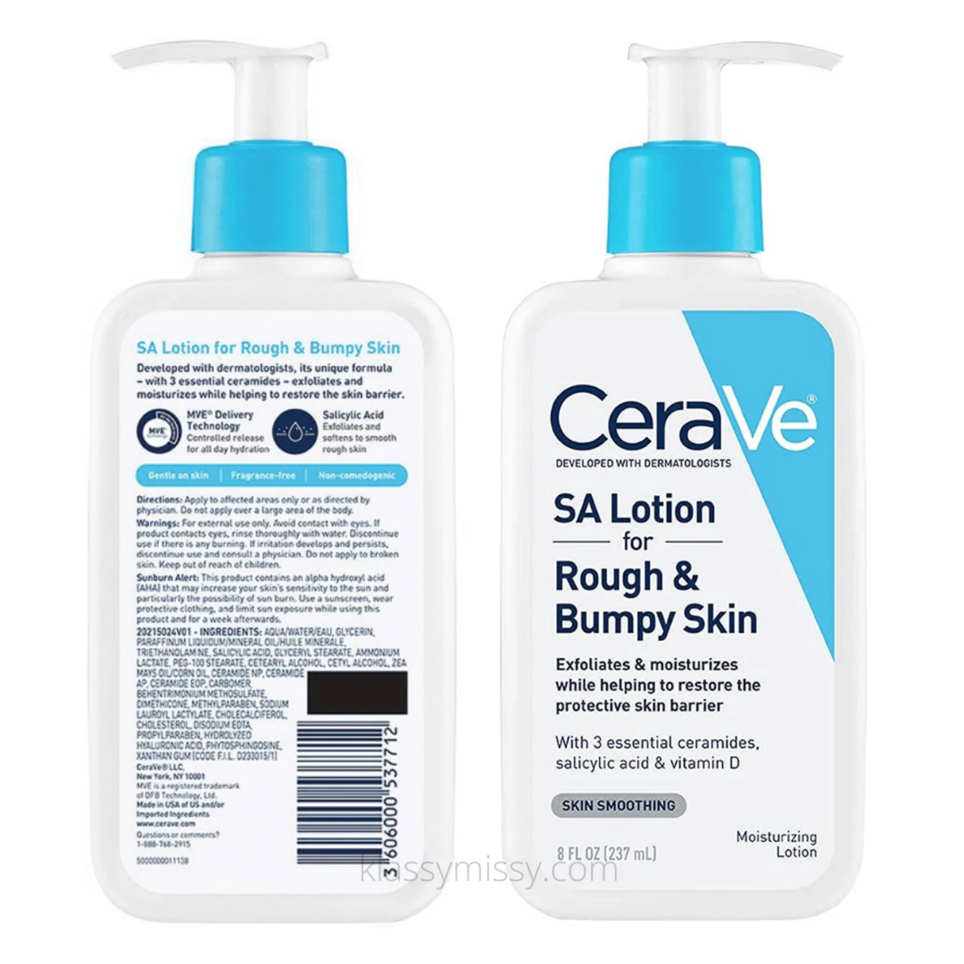 CeraVe SA Lotion is a skin-smoothing, exfoliating moisturizer designed to improve rough and bumpy skin without compromising the skin barrier. Formulated with salicylic acid, vitamin D, and three essential ceramides, it gently exfoliates dead skin cells while delivering lasting hydration. Developed with dermatologists, this non-comedogenic and fragrance-free lotion is ideal for daily use on body and arms.