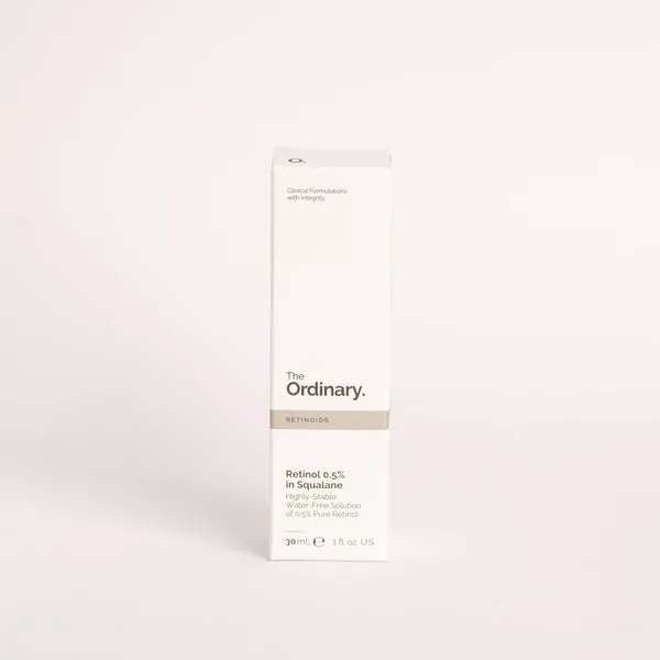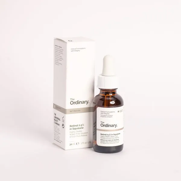 Retinol 0.5% in Squalane, 30ml features highly stable retinol, an ingredient that can reduce the appearance of ageing with impressive results. A powerhouse form of vitamin A, retinol encourages cell turnover, revealing healthier, softer skin while also tackling blemishes, dark spots and defying signs of ageing – including softening the appearance of fine lines and wrinkles and uneven tone. Retinol can cause significant irritation, including redness and peeling – but many feel that its significant effects counterbalance this; recommends building your skin’s tolerance to retinol with lower concentrations such as {Retinol 0.2% in Squalane} to minimise discomfort.