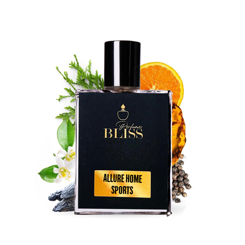 Bliss Perfumes Allure Home Sports (30ml) is an energetic and refined Eau de Parfum inspired by Chanel Allure Home Sports — a fragrance for active men who carry elegance with confidence. It begins with a burst of mandarin, orange, and sea notes, followed by pepper, neroli, and cedar, and ends on a clean, sensual base of white musk, tonka bean, and amber.